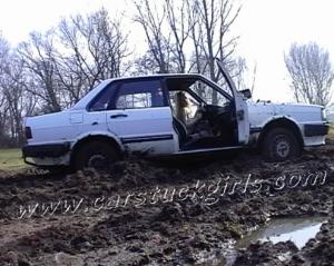 Well, the roads are worser than she thought. After some meters their Audi seems to move hardly still forward. Michelle annoys that, she gets angry. She has a four-wheel-drive – what for when the stupid car even doesn’t get through this little mud??? She continues to try. But then she is really stuck. But Michelle does not give up. That must go. Go, go, go you stupid car!